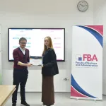 “Today, we gathered to celebrate the exceptional achievements of our students. Each name on this list represents hard work, lots of sacrifice, and passion for learning. This success would not be possible without the support of our faculty members who are an important guide along the road, our administrative staff that provides an enjoyable environment, and of course, the most important one — the family”, stated the FBA Dean.